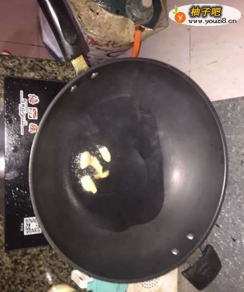 2开火,加入食用油,将蒜头入锅炒香;