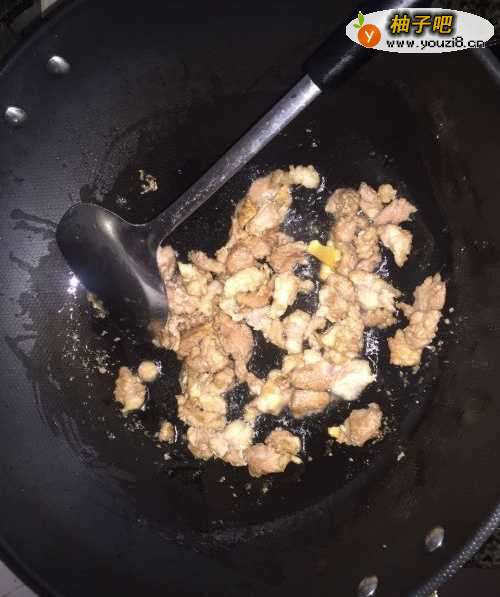6将瘦肉倒入锅里,加入盐和鸡精,翻炒均匀,就完成了。