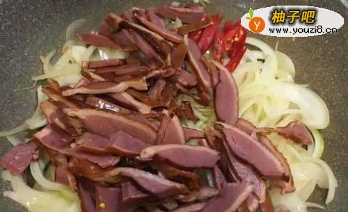 洋葱炒鸭胗是一种味道极好的美味有营养的家常菜