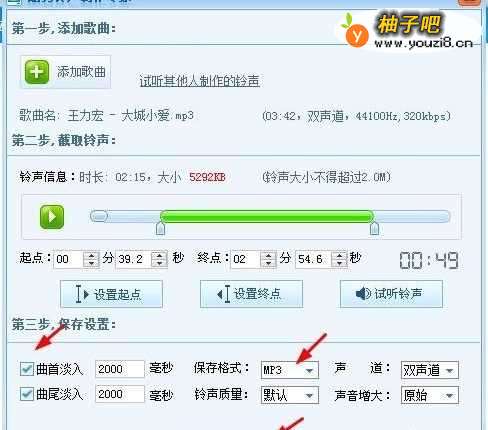 6设置保存格式为MP3,点击保存铃声
