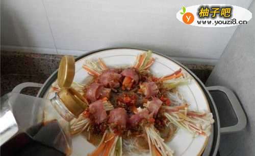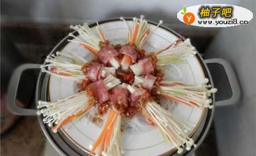 13将蒜蓉酱浇在金针菇上。