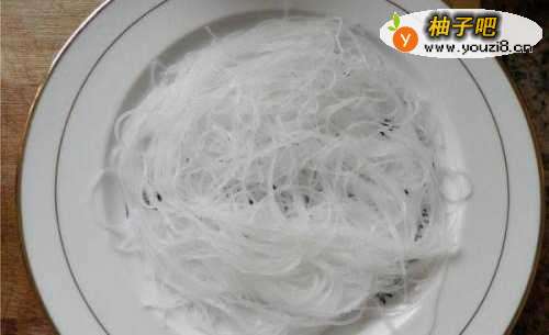 粉丝用开水浸泡5分钟。