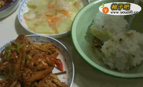 家庭生活是多样的饮食,有蔬菜,有米饭,有的还要配上有味道的食物【熟肉等】。