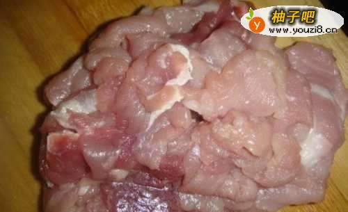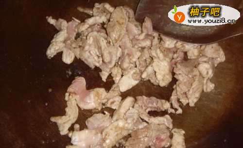 2油锅加热烧至七分熟,放入猪肉炒变色。