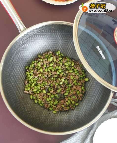 5这时候,加入毛豆,炒至熟。