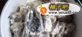 草鱼切小块,加入料酒腌制下,然后加入面粉搅拌均匀