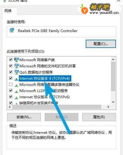 4在网络协议中点击Internet协议版本4(TCP/IPv4)选项。