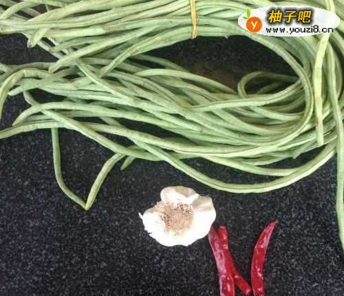 准备所需食材:豇豆、蒜、干红辣椒等。