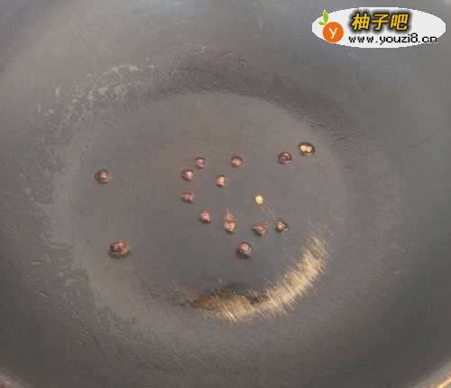 4热锅倒油,油热后,放入少许花椒粒爆香,然后再放入蒜末和干辣椒一起炒香。