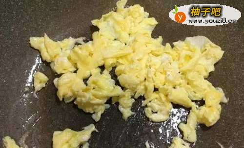 2鸡蛋加少许盐打散,锅热加一大匙油,倒入蛋液