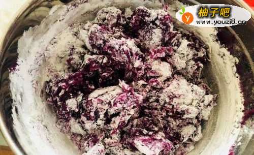2加入白砂糖搅拌成紫薯泥。