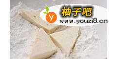 2豆腐切块后表面沾一层玉米淀粉。