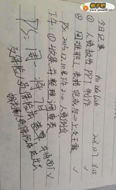 To do list.这就是计划,每天工作开始前,对今天要做的事情列一份清单,将事情按照轻重缓急列好,然后还要留有一定的时间空隙。列清单的过程就是对整天工作的一个梳理,按照清单上的去做,及时每天的突发状况再多,也不至于忘记自己要做的事情。当天工作结束时可以核对清单上的事情,看看哪些做了,哪些没完成,然后就能清楚的知道自己的完成情况。