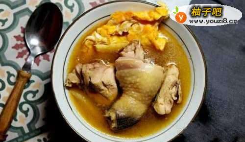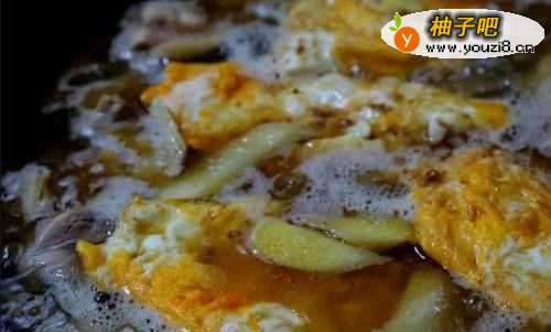 6把一开始煎好的鸡蛋放入汤中一起稍微滚煮就可以了