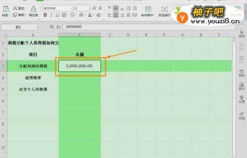 在Wps Excel表格页面,选择单元格【B3】,输入【分配利润所得额】。
