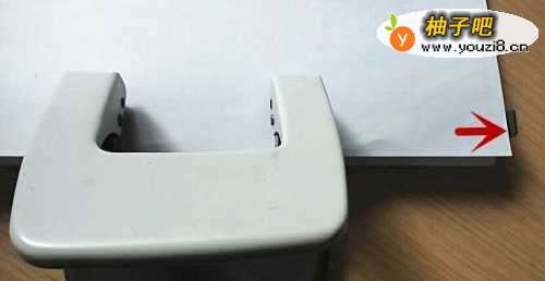 6将纸张塞进打孔机里,纸张的中心点与打孔机的中心指示点对齐。