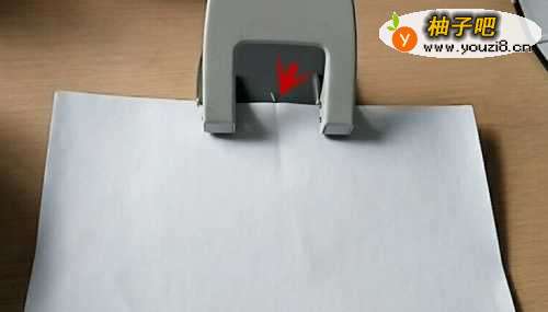 4下面需要将一叠纸张打两个孔。