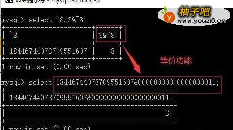 2)案例:~8得到的是:18446744073709551607;3&~8则是18446744073709551607转化为二进制后与0011进行按位与计算,结果为3。