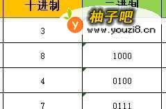 我们准备几个十进制数字,并列出其对应的二进制数。见图: