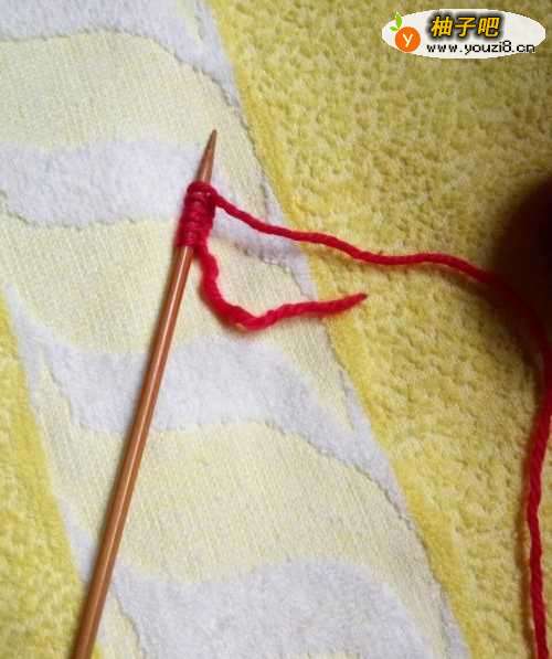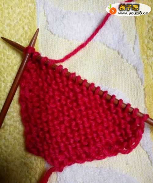 4然后分成2个针来织,线也分为2个头。(这样织好后中间有缝隙,可欠民蹲以把另一头套进去的)在每排的外侧头尾各加一针,一共加到24针。这就是围脖的宽度了。