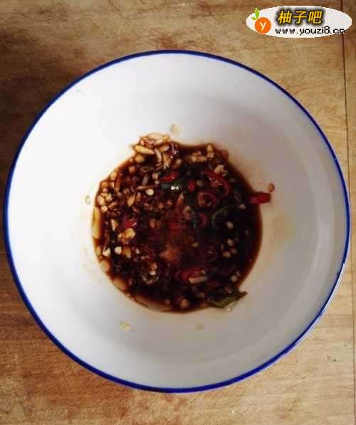 4加入生抽、老抽、香醋、白糖、香油、盐、鸡精搅拌均匀