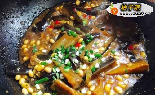 8最后一步就是将烧好的黄豆烧茄子装盘端上桌想用啦!