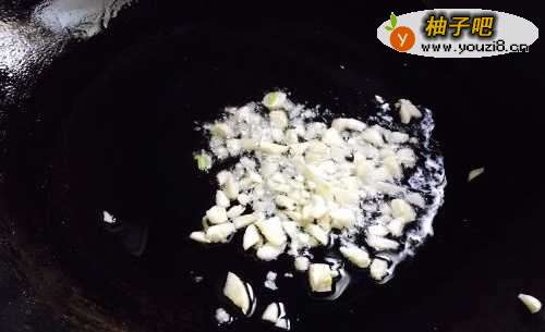 3锅里放少许油,油热了之后先把蒜末放进去煸香,然后把泡软的黄豆倒进去翻炒,翻炒到黄豆出香味之后加入适量水先煮一会。