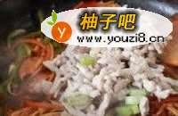 5锅中放油烧热后放入肉丝迅速拨散,至颜色变白即关火盛出备用;