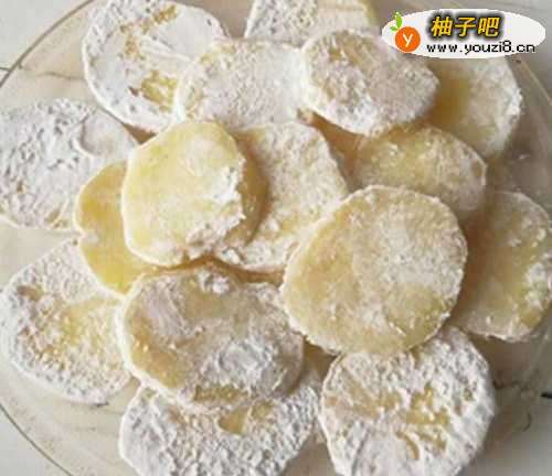 3煮好的土豆片捞出,放凉后裹淀粉