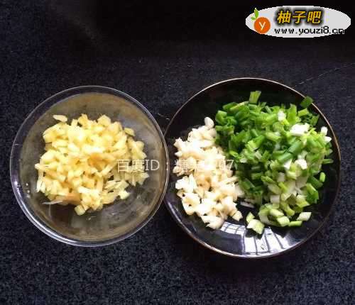 3煮的时候,切好葱姜蒜,将淀粉兑水,搅拌均匀备用。