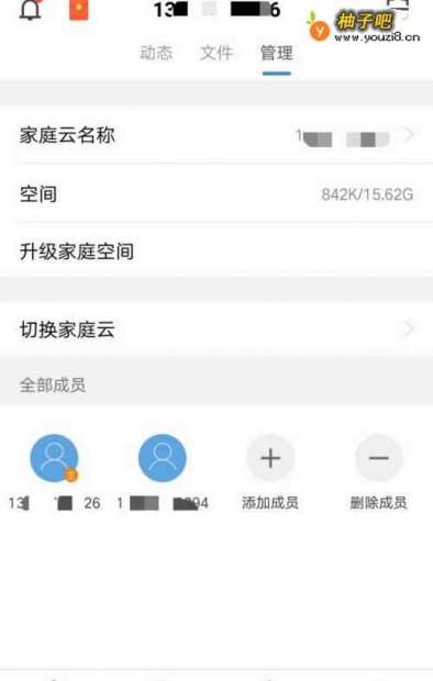 4家庭云空间管理界面,是可以修改家庭云名称,看到你的储存空间,切换家庭云账号和家庭云劣泰慎全部成员并添加、删除家庭云成员的。