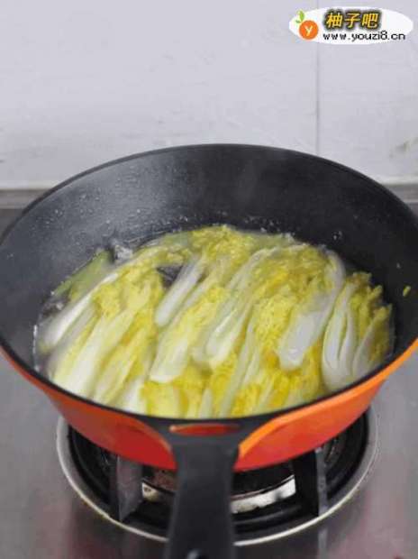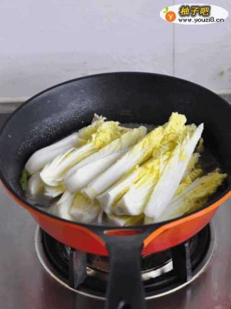 5兑入一碗高汤,放入娃娃菜,中高火煮。