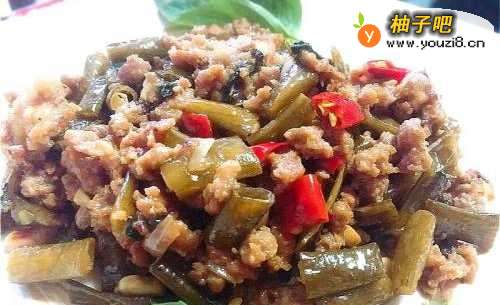 酸豆角用来炒肉碎,加入朝天椒,酸酸辣辣,很开胃。