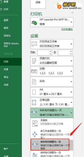 Excel2019如何快速将所有列打印在一页
