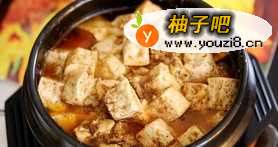 4将泡水的豆腐丁和水一起倒入砂锅中,不用再加任何其它调味品