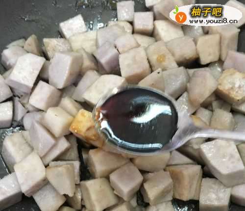 5之后放入芋头,翻炒均匀。