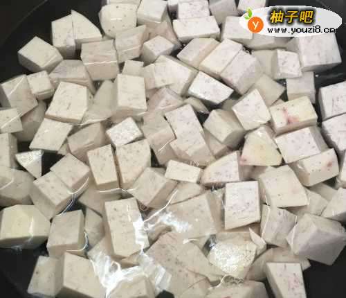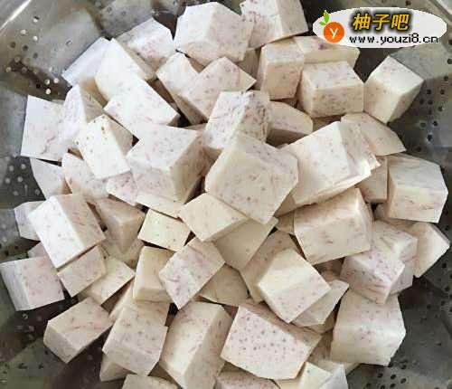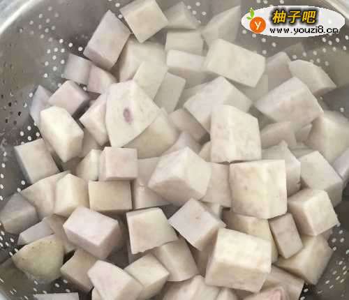 把芋头去皮洗净,切成方块。
