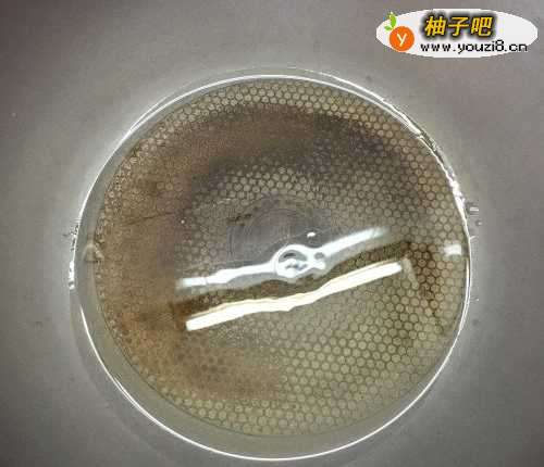 4锅烧干关火,然后加入适量花生油,再放入2汤勺白砂糖,开火炒融。