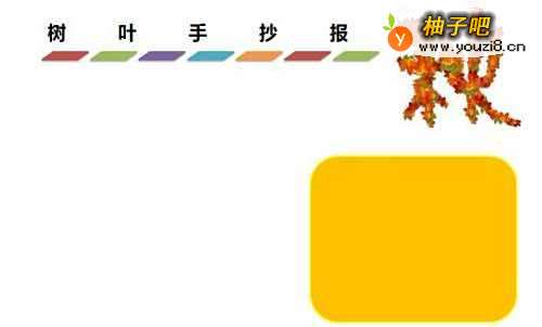 4在【树叶手抄报】标题的下方右侧处,在框内写上字,如下图所示。