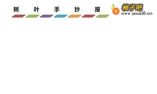首先,用彩笔在白纸上,画出含有立体感小长方形框架并涂上颜色,在白纸的顶部靠左写上字:【树叶手抄报】的标题,如下图所示。