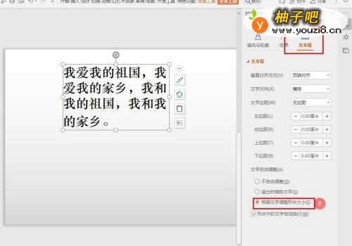 4在文字自动调整项,勾选【根据文字调整形状大小】即可;