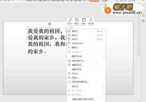 2选择【文本框】,单击【鼠标右键】,选择【设置对象格式】;