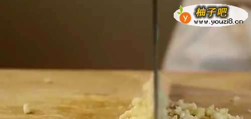 33. 蒜切末,红椒切细丝。
