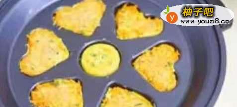 6模具中倒入面糊,待底部的面糊凝固后,翻面,煎至两面金黄色即可。