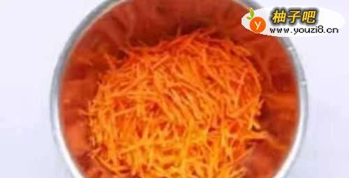 胡萝卜洗净,切成胡萝卜丝。