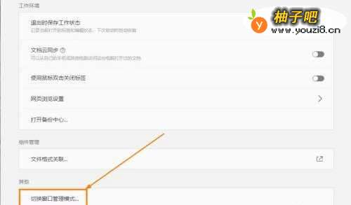3在设置中心,点击【切换窗口管理模式】打开;