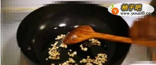 7韭菜炒好后,起锅。锅中放入少许食用油炸点辣椒油