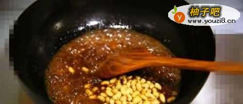 3加入黄豆小火继续抄, 加入少许盐