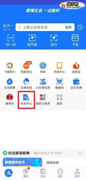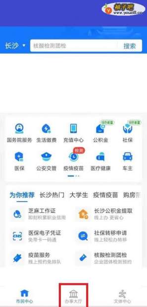 3市民中心选择下方办事大厅。