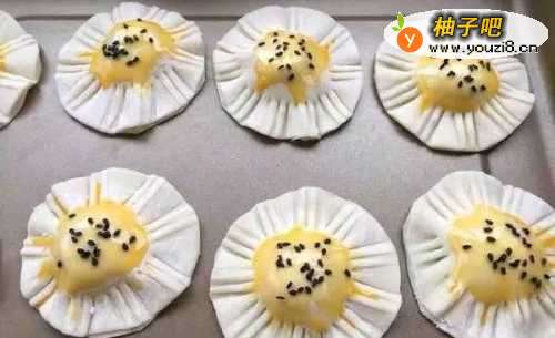 6刷上蛋液,撒上黑芝麻。见下图